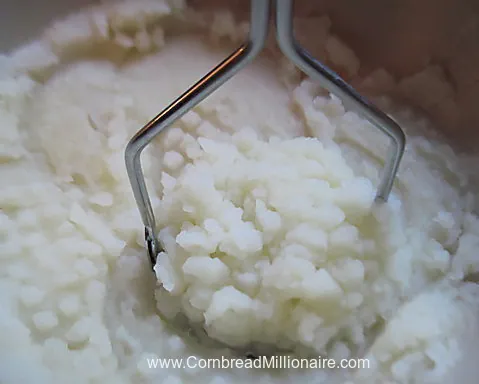 - Use a masher or back of large spoon to mash potatoes to desired consistency.